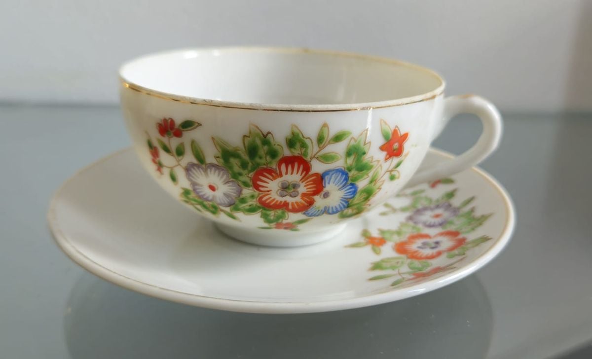 xícara de chá com pires em porcelana japonesa nagoya
