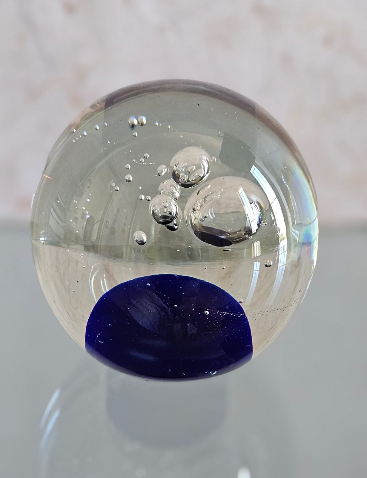 Peso de papel em murano bullicante. Medidas 10 cm (altura) x 6 cm de (diâmetro).