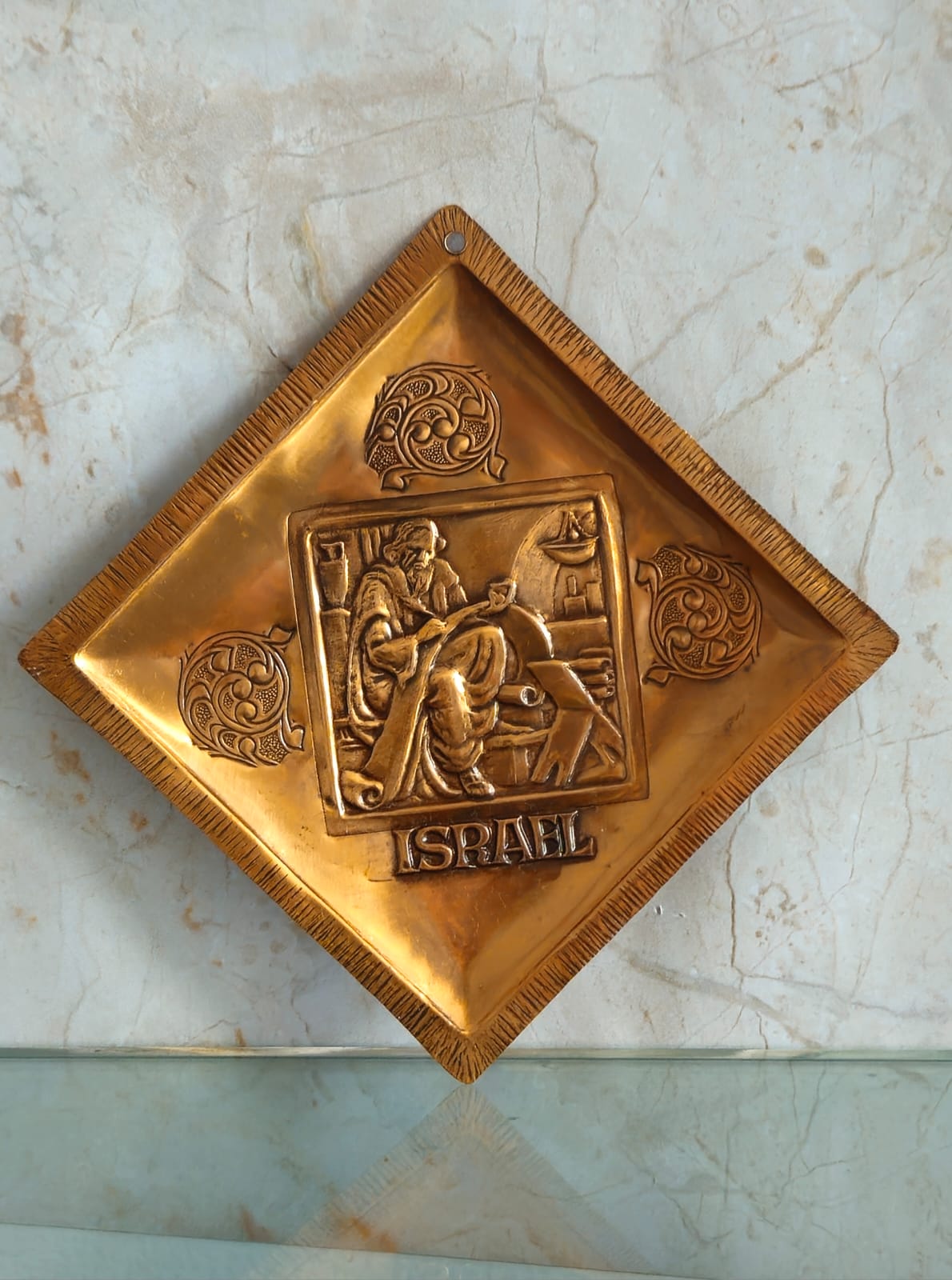 prato judaico em metal com detalhes em relevo. 11 x 11 cm