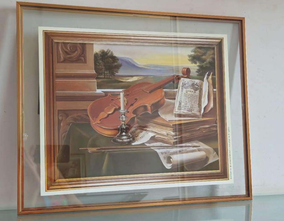 Quadro Natureza morta, manuscritos de Yitzhak Hazin. Medidas 43 cm altura x 51 cm comprimento.