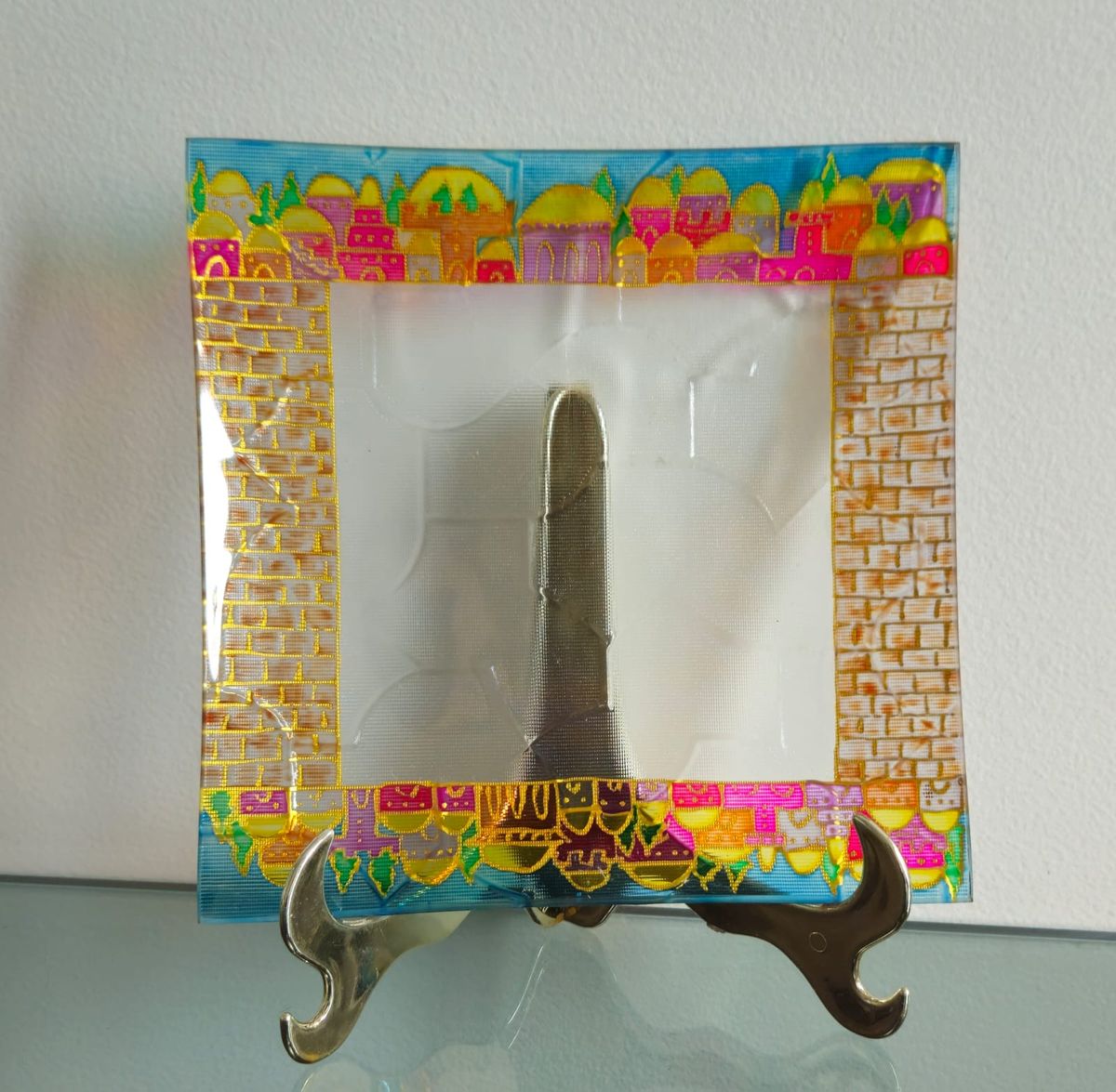 travessa / petisqueira judaica, em vidro, pitanda à mão