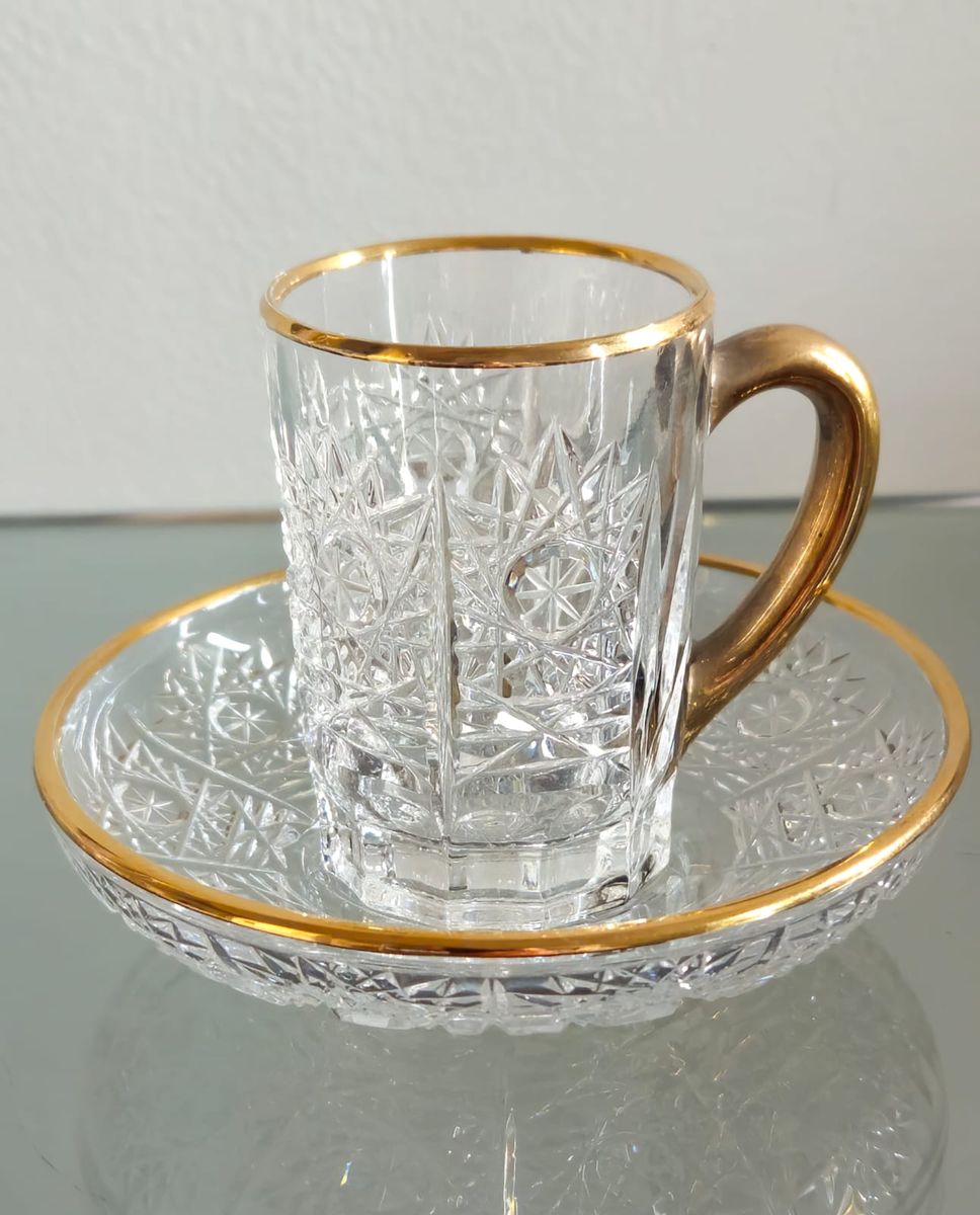 xícara de café com pires em cristal